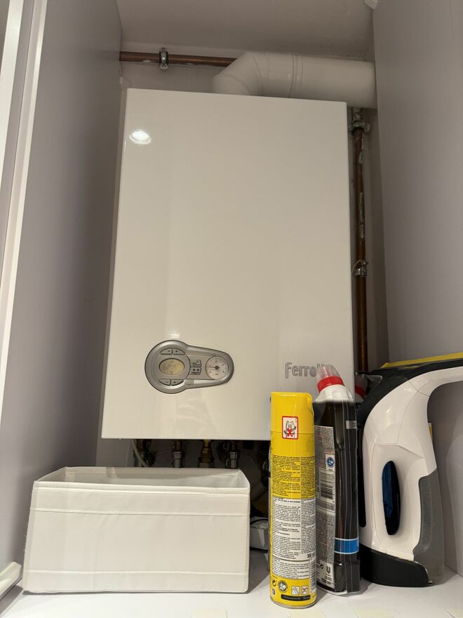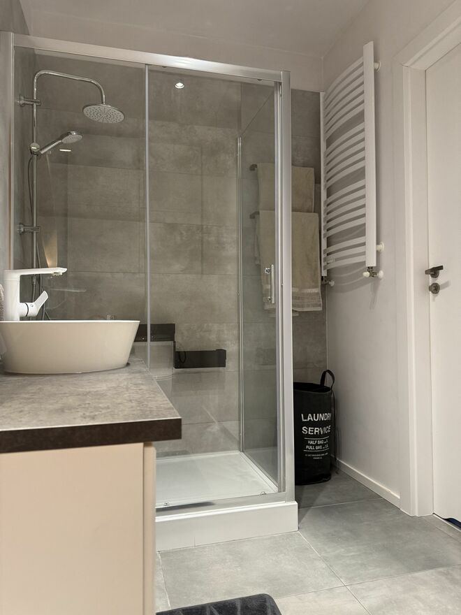 Wyposażona w prysznic, toaletę, umywalkę oraz zabudowaną pralkę. Znajduje się tu również piec dwufunkcyjny Ferroli, zapewniający niezależne ogrzewanie gazowe.
