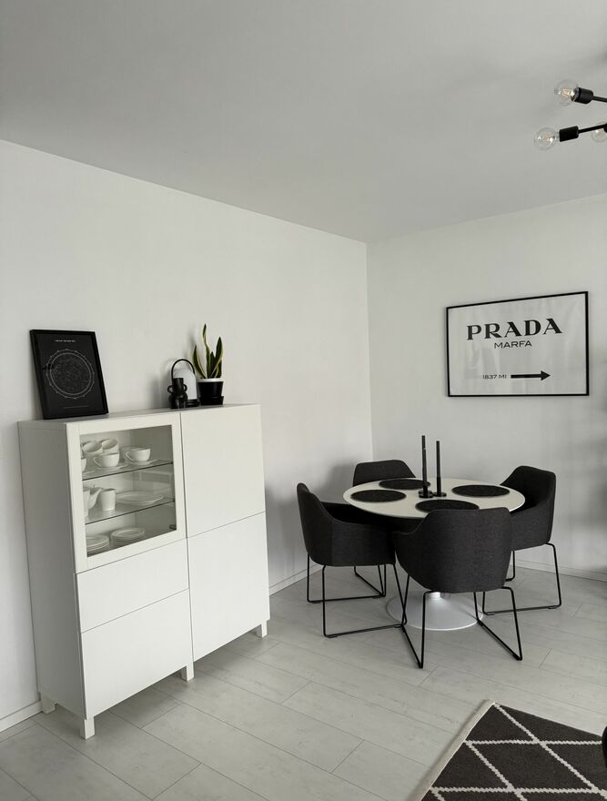 Południowo-zachodnia ekspozycja okien gwarantuje znakomite doświetlenie przez cały dzień, a wysoka jakość wykończenia i pełne wyposażenie kuchni (piekarnik, płyta indukcyjna, okap, lodówka z zamrażarką, zmywarka, mikrofala) pozwalają na natychmiastowe wprowadzenie się.